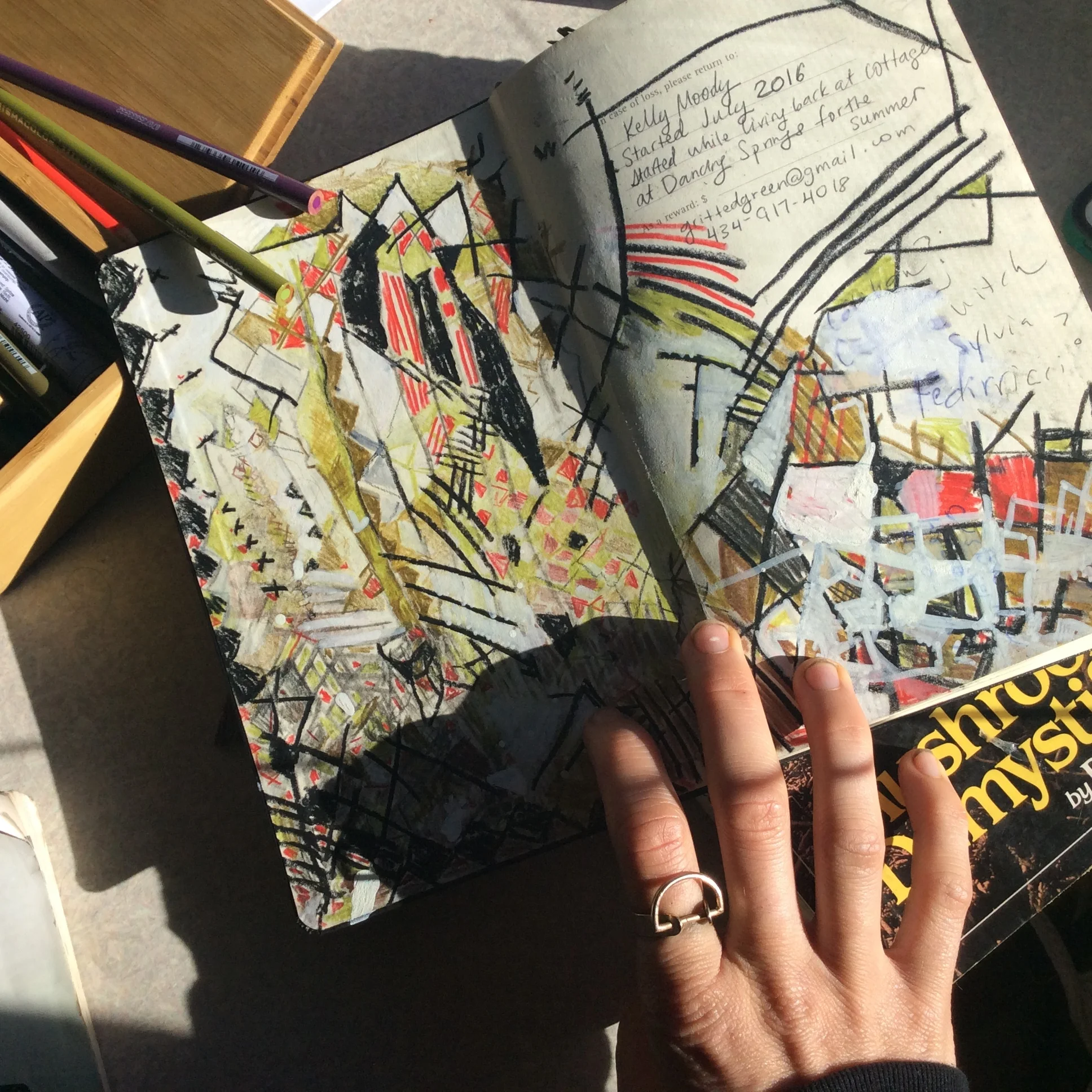 i work in several mediums : watercolor + watercolor pencil, gouache, color pencils, wax pastel, pen and ink, homemade black walnut and oak gall inks.